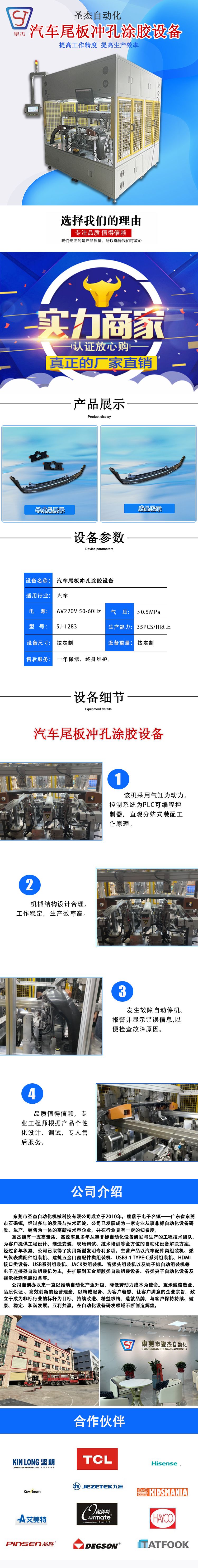 -> 汽車尾板沖孔涂膠設備 非標自動化裝配線 圣杰